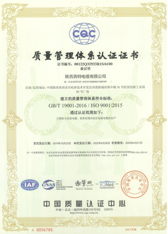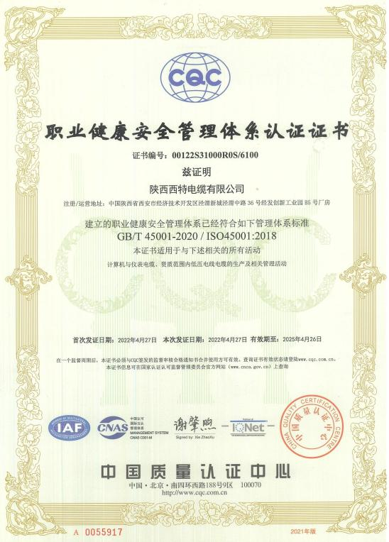 ? 近日,陜西西特電纜有限公司順利通過(guò)中國(guó)質(zhì)量認(rèn)證中心專家審核組的審查,取得了ISO 9001質(zhì)量管理體系、ISO 14001環(huán)境管理體系、ISO 45001職業(yè)健康安全管理體系認(rèn)證三項(xiàng)證書。